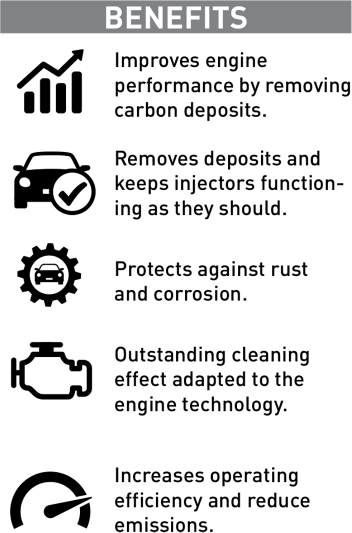 Removes deposits and keeps injectors functioning as they should.